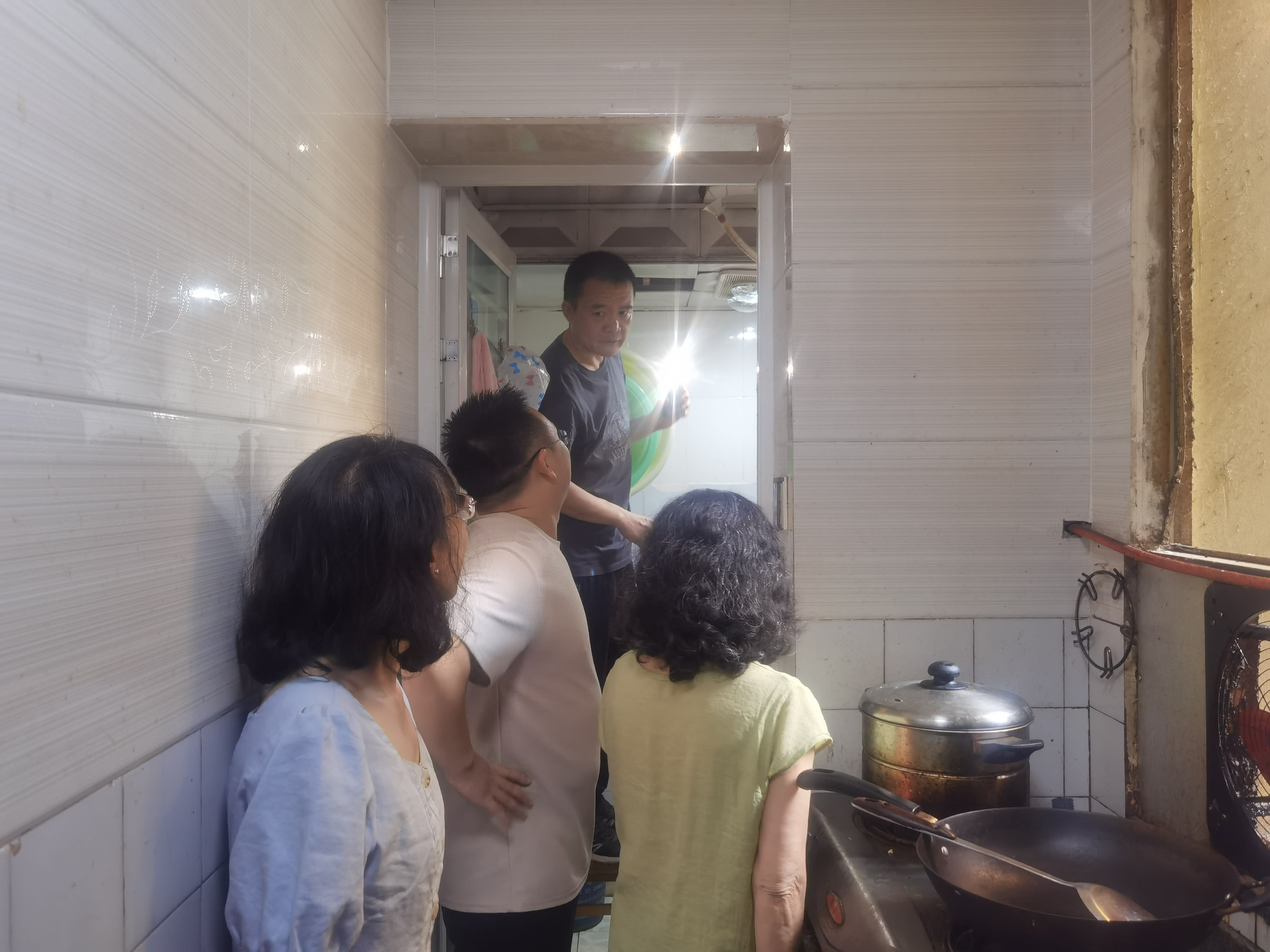 街道副书记王静带队对已出租的国有房屋装修进行安全检查,要求单位负责人做好施工、用电等安全管理。