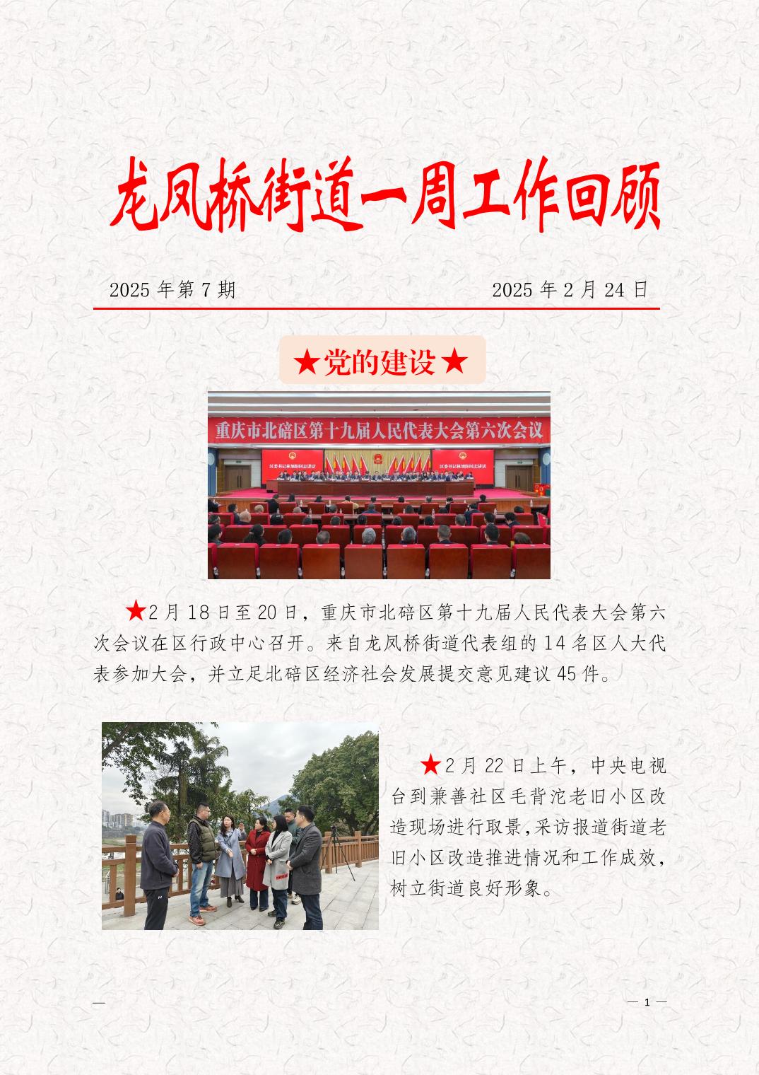 龙凤桥街道一周工作回顾 2025年第7期